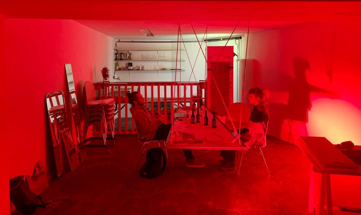 Blasen-platzende Momente wirken als eine antreibende Motivation, auch wenn sich Düker bewusst ist, dass ein richtiger Bubble-Break schwierig umzusetzen ist. Düker lebt von Ideen, die im Raum selbst entstehen – wie der fliegende Tisch auf dem Foto, welcher wegen Platzmangel entstanden ist – aber auch von solchen, die von aussen in den Raum reingetragen werden. So steht der Düker mit der Umgebung des Dynamos in einem Austausch. Zudem entspannt die Nähe zum Jugendkulturhaus Düker auf verschiedenen Ebenen: So kann Düker bei jedem Durst zu Getränken greifen, bei einer spontanen Aktion ein Event-Plakat mit dem Riso drucken, für den beautyspace den nail-polish-Wagen ausleihen oder sich ein neues Möbelstück schmieden. Auf die Frage hin, ob das Dynamo auch einschränkend wirkt, erwidert Düker: