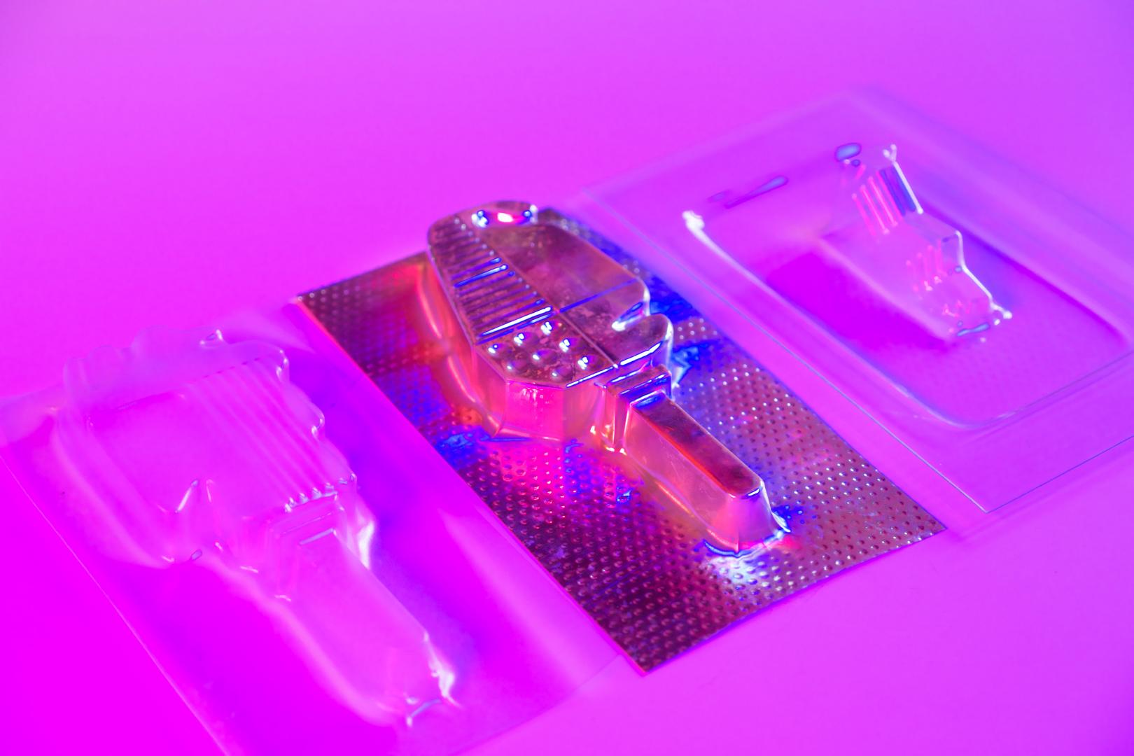 Thermoforming ist ein Herstellungsverfahren, bei dem eine Kunststofffolie erhitzt wird, bis sie biegsam wird, und dann mit Hilfe von Vakuum in die gewünschte Form gebracht wird. Die Folie wird erhitzt und dann über eine Form oder in einen Formhohlraum gelegt. Sobald die Folie abgekühlt und ausgehärtet ist, behält sie die Form des Molds bei.