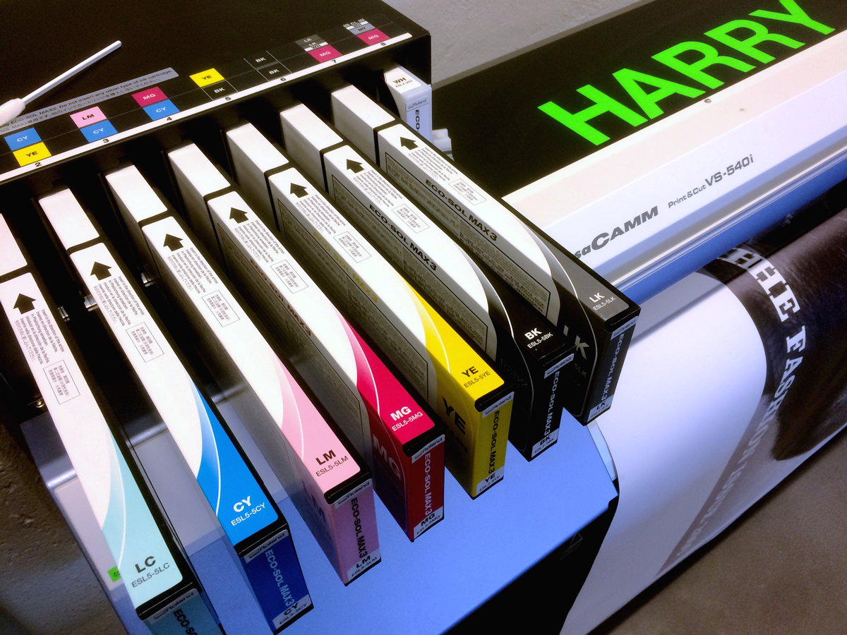 Harry mag es gross. Er druckt beinahe jedes Material, das er ab Rolle kriegt. Mit seinen 7 Farben (CMYK + LC + LM + LB) und weiss besticht er auch durch eine qualitativ hohe Brillanz.